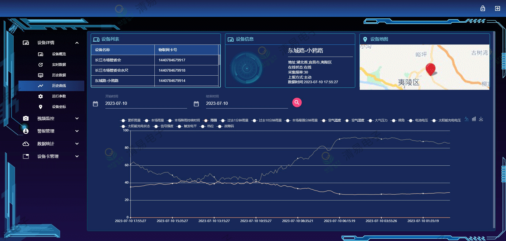 监测目的:掌握边坡区域环境参数情况,有较大降雨时进行报警。