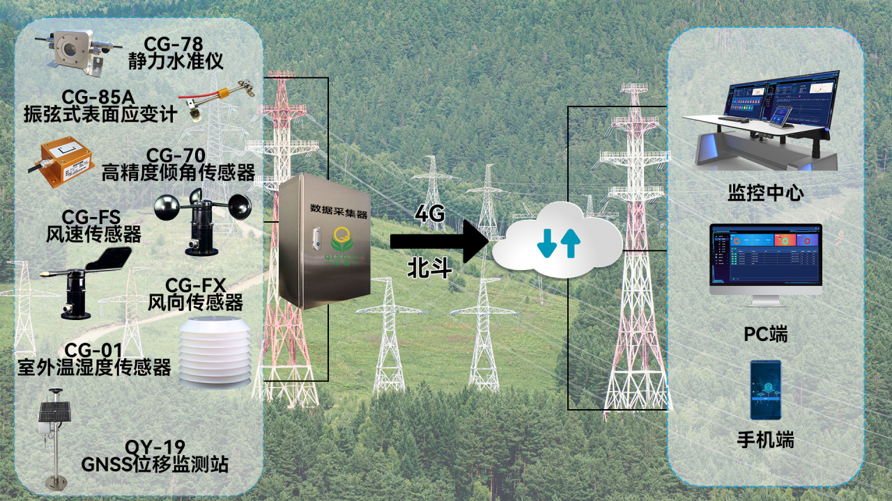 高压铁塔在线监测解决方案是一种采用自动化监测技术对电力铁塔进行实时、在线、自动化监测的系统。该系统通过实时采集电力铁塔的位移、塔身倾斜、塔基沉降、风速、风向、温度、湿度等数据,利用数据分析实现对铁塔的状态评估,及时发现缺陷和隐患,为铁塔的稳定运行提供保障。