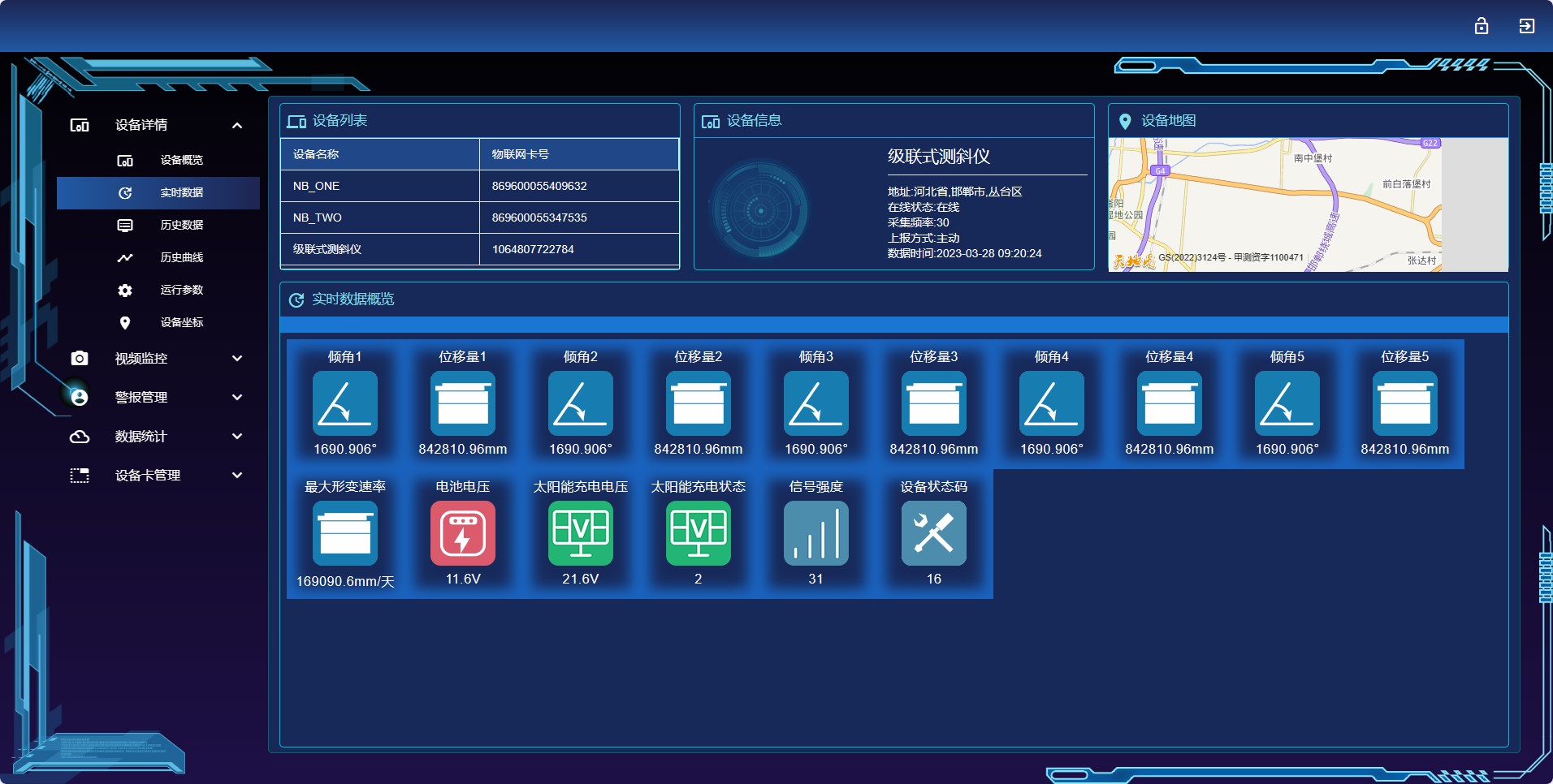 对铁塔的倾斜角度、应变变化、风速风向、环境温湿度等参数进行实时监测,并在监控平台上以图表、数字和图像的形式直观展示。